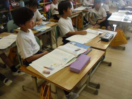 3年生は算数で棒グラフについて学習を進めています。今日は、棒グラフの書き方を全員で確認しました。