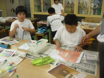 6年生は図工で「身近な風景を描こう」という教材を学習しています。今日は奥行きのある絵に挑戦しました。