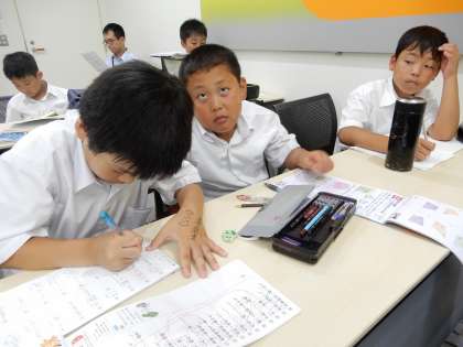 5,6年生は、会議室です。60分間ですが、みんな頑張っています。