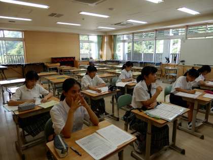 吹奏楽部は、8/2(木)静岡県吹奏楽部コンクール東部大会に向けてビデオを視聴し、細かい部分の確認をしています。先日も焼津まで練習に行ってきました。コンクールに向けて頑張っています。