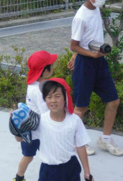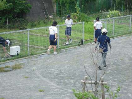 小中CD組の日常生活指導の様子です。朝トレーニングの後に、畑の水やりを行っていました。