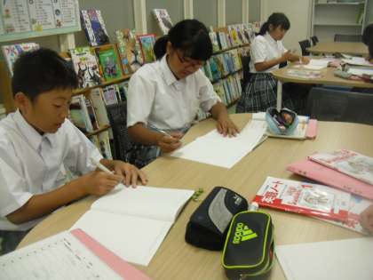7年生は英語で、鈴木先生と夏休みの宿題について確認していました。明後日から夏休みになります。夏休みの学習を計画的に行って行きましょう。