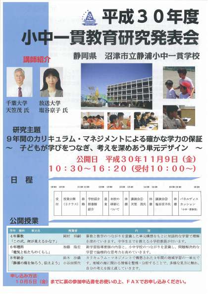 11月9日(金)に「平成30年度小中一貫教育中間研究発表会」を開催します。