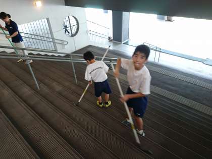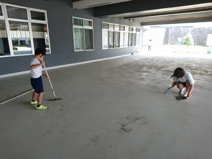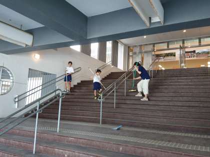 小中CD組は生活単元学習を行っていました。子どもたちは中央玄関や1階ピロティを丁寧に掃き掃除しました。