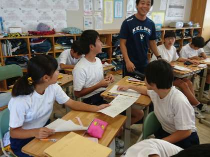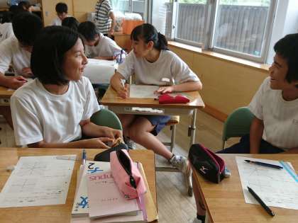 8年生は1次関数の学習を行っています。1次関数のグラフを書いて友達と確認しあいました。