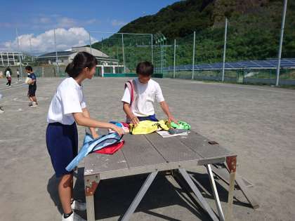 自治会種目練習の後、黒潮祭実行委員が後片付けを黙々と行っていました。