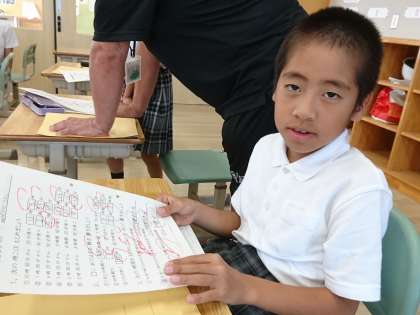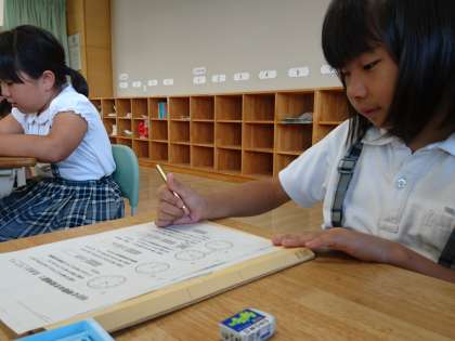 3年生は「時間と時刻」の学習を行っていました。時計の模型を使いながら確認する子もいます。3年生一人ひとり、とてもがんばっています。