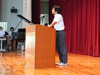 9年生の古屋さんによる「私の主張」です。