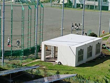 大グラウンドでは野球部とサッカー部が練習を行っています。南部浄化センター付近から撮影しました。