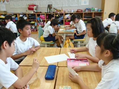 4年生は総合的な学習の時間において「静浦の魚はなぜ沼津港(せりの会社)に行っているのか」という単元を学習しています。今日はインタビューで何について聞くかをグループごと話し合いました。