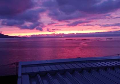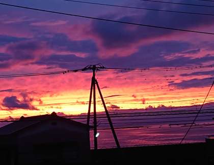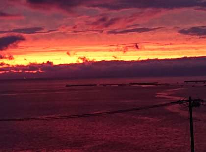静浦から望む夕焼けです。幻想的な夕焼けは、一幅の名画のようでした。