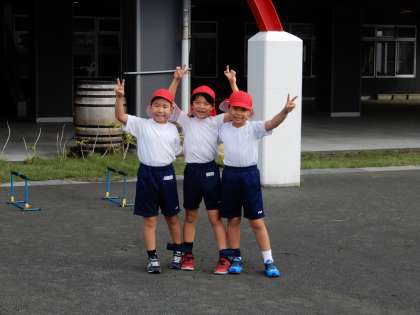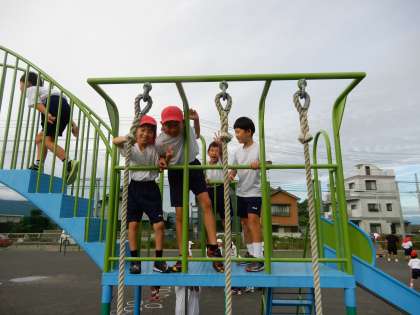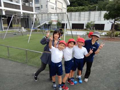 空は曇り空ですが、プレイグラウンドは子どもたちの笑顔で一杯です。