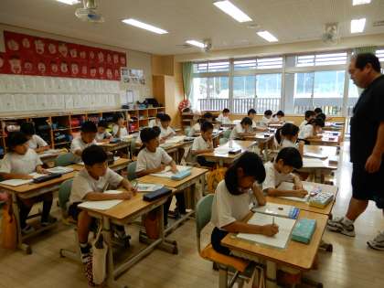 掛け算のひっ算を練習しています。家庭でも繰り返し練習しましょう。