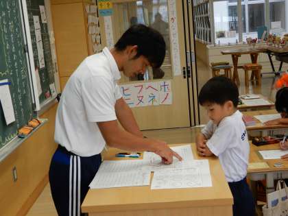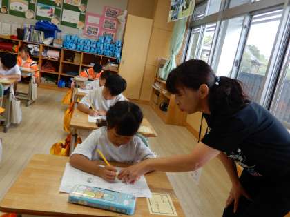 担任の匡崇先生が出張です。江本先生と狩野先生と一緒に計算練習です。