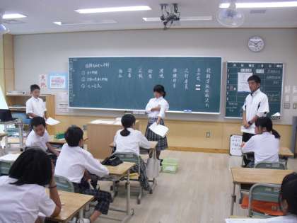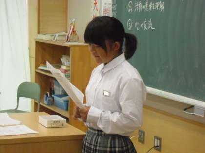 後期の学級組織を決めた後に、学級役員、自治会役員などがあいさつしました。