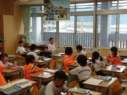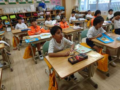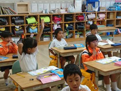 1年生は国語で「わたしのはっけん」という教材を学習しています。みんなで「だんごむし」という作文を読んで、作文にどんなことを書いたらよいのかを話し合いました。