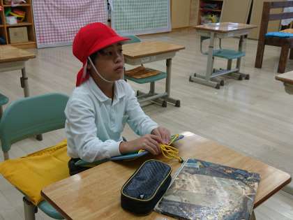 小C組は日常生活指導を行っていました。最初に朝運動を行いました。その後、社会科見学に出かける3年生に対して、バスでの過ごし方、見学の仕方についての注意事項を最終確認していました。
