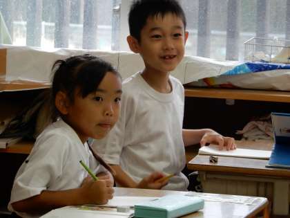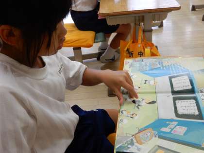 朝の読書の様子です。1Aの教室は教材であふれています。