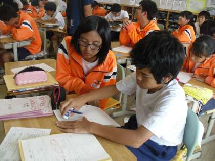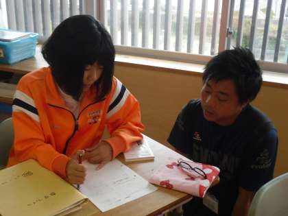 2点の座標から、一次関数のグラフを読み取る学習をしています。