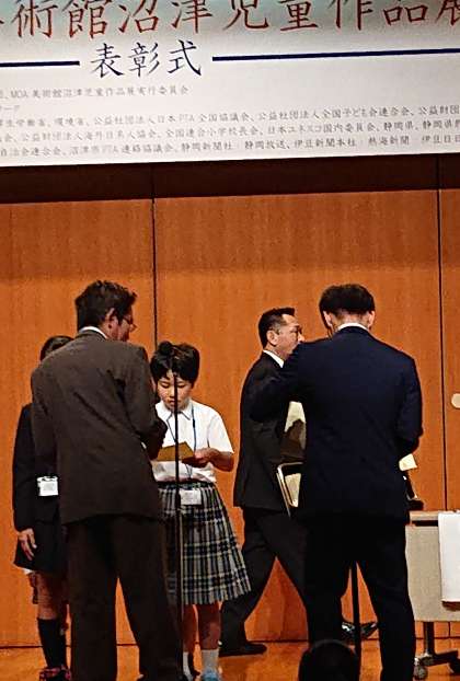 MOA美術館沼津児童作品展表彰式の様子です。増田さん、鈴木さん、本日は誠におめでとうございます。