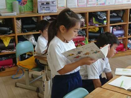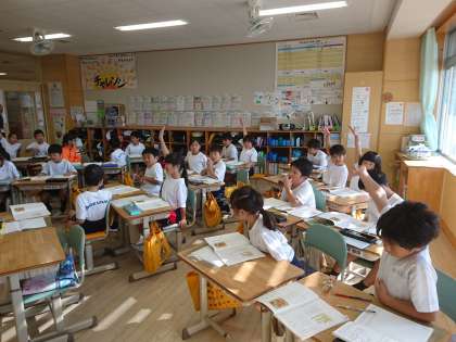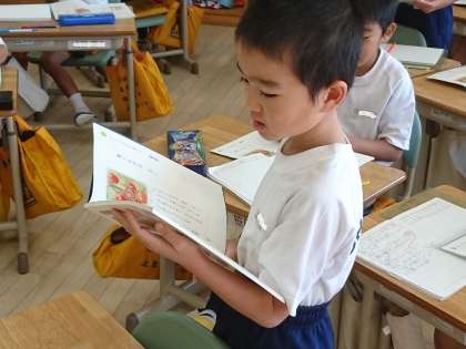 2年生は国語で「食べるのはどこ」という教材を学習しています。子どもたちは音読を上手に行っていました。