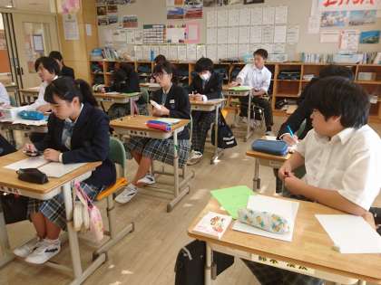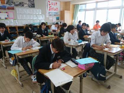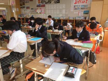 9年生は総合的な学習の時間においてレポート作りを行っていました。レポートの書き方手順を確認した後、丁寧に敬体で文章を書いていました。