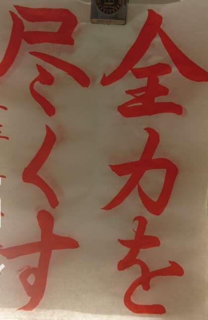 9年生は席書コンクールで「全力を尽くす」という字を毛筆で書きます。