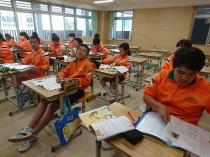 7年生は音楽で「日本の歌の美しさを味わおう」という教材を学習しています。童謡「赤とんぼ」を聴き、感じたことを話し合いました。