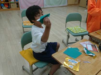 小C組は作業学習で、丁寧に折り紙を折る活動をしていました。