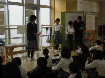 立志部委員、自治会執行部、各専門委員会の7長の紹介と、後期立志部委員会のスローガン「立志部流星群」〜みんなが同じ方向に向かって、一人ひとりが輝きながら進んでいこう!〜 の発表がありました。やる気いっぱいの気持ちが伝わってきます。