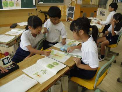 「わたしたちは、やさいのどこを食べるのでしょうか?」を学習問題に、アスパラやキャベツ、ブロッコリー、なす、にんじん等について考えています。