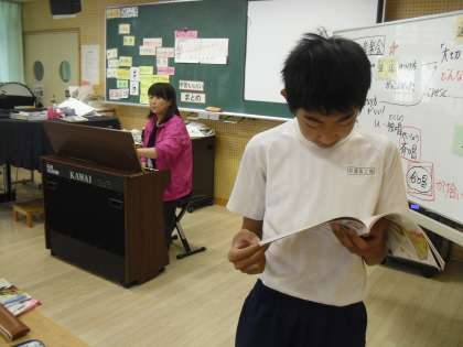 「たいせつなもの」をみんなで合唱しています。人数は少ないですが、大きな声で元気な合唱になっています。