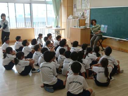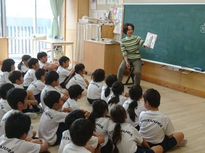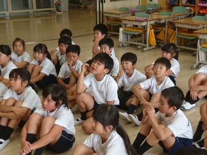 2年生は聞く姿勢も素晴らしいです。図書館司書による読み聞かせを楽しんでいました。