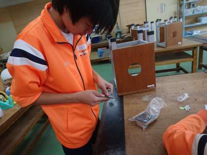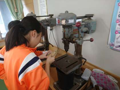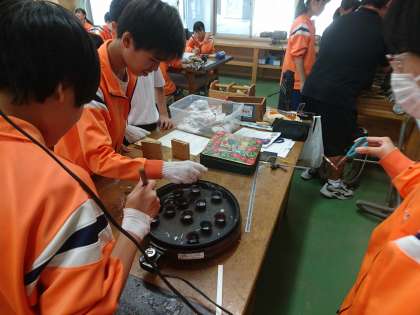9年生は技術でキーホルダー作り(鋳造)を行っていました。みんな丁寧に作業をしています。