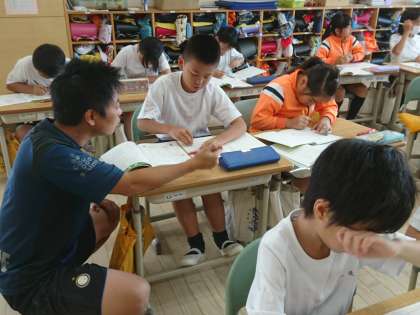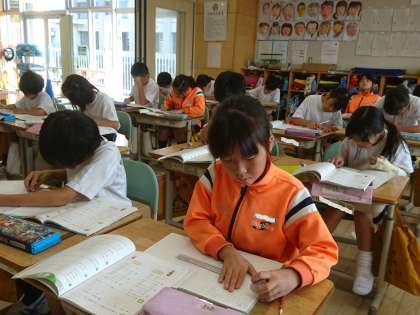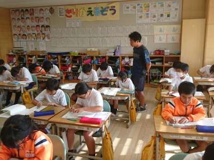 4年生は算数で、割り算のきまりを使って、いろいろな問題を解いていました。