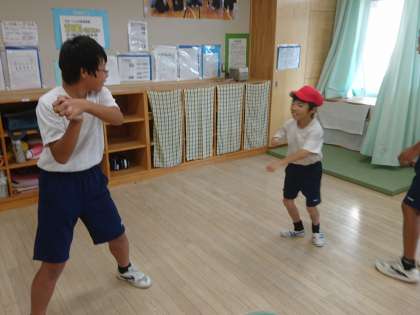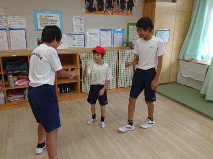 小中C組の休み時間の様子です。仲良く触れ合っています。