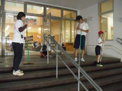 生徒玄関前の階段と正門付近をきれいに清掃してくれました。ありがとうございます。