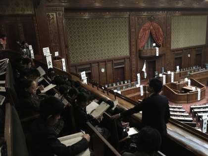 国会議事堂の衆議院本会議場で説明を聞いています。