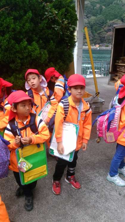 かえりのバスを待っています。あわしまマリンパーク13時59分発のバスで帰ってきます。