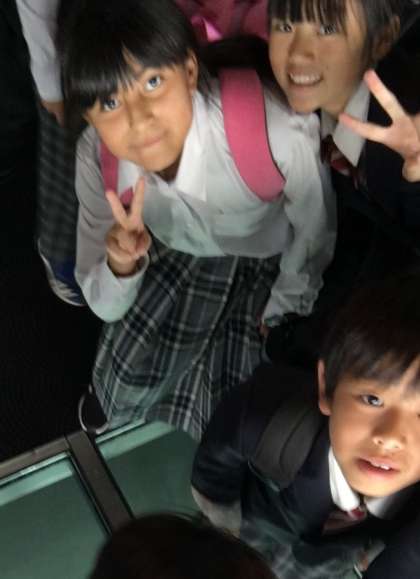 東京スカイツリーでの様子です。ガラス板の上に乗っています。
