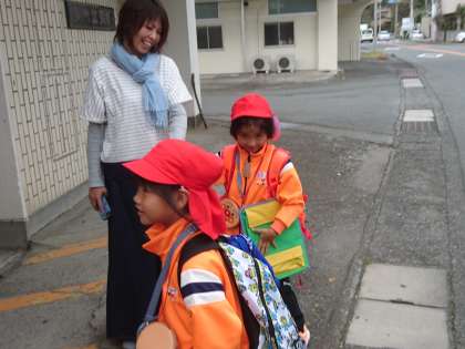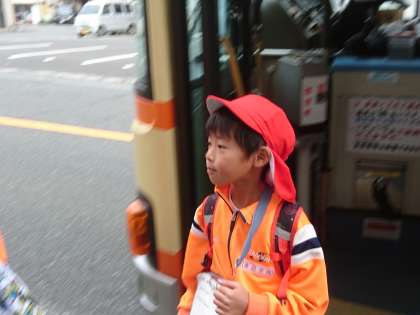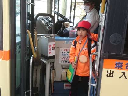 1年生があわしまマリンパーク校外学習を終え、静浦に戻ってきました。多比バス停で3人が降りました。