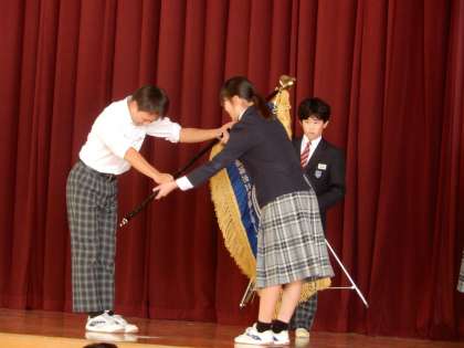 11月に入り朝晩の冷え込みが一層深まってきました。昨日自治会執行部の引き継ぎと後期自治会総会が開催されました。後期のテーマ「キャッチボール」の通り伊藤会長から瀬川会長へ学校旗が手渡されました。会長より「さらによりよい静浦小中一貫学校を目指していきたい」と力強く話がありました。