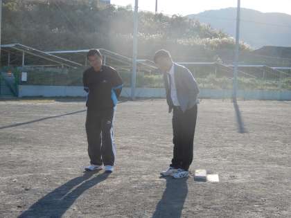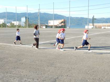 大グラウンドでは、持久走大会に向けて、朝マラソンを頑張っています。先生方もありがとうございます。
