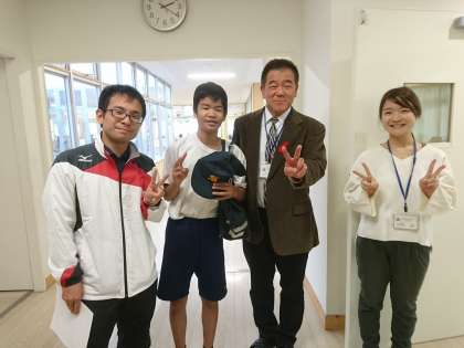 校外学習から帰ったきた8年生が校長先生に帰校報告をしました。