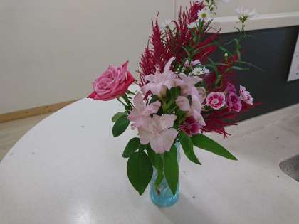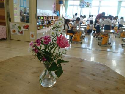 児童生徒玄関の靴箱上や初志部コモンスペースにきれいな花が飾られています。お花を飾っていただきありがとうございました。
