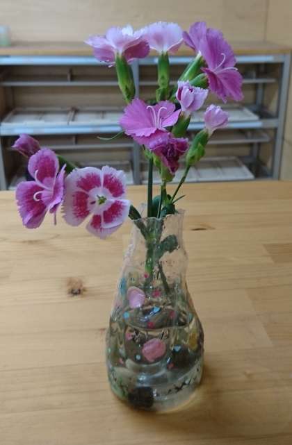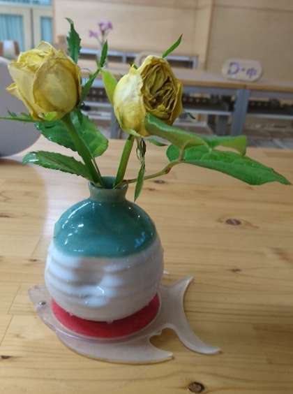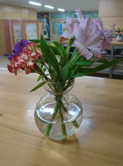 児童生徒玄関の靴箱上や初志部コモンスペースにきれいな花が飾られています。お花を飾っていただきありがとうございました。