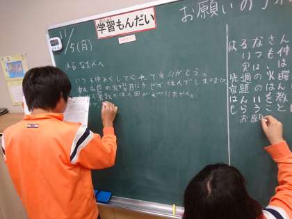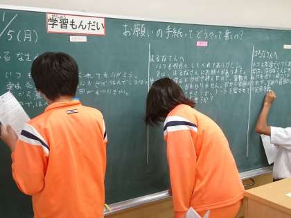 中C組は国語で「大事なことをまとめて書く」という単元を学習しています。手本を参考に、お願いする文章を書きました。