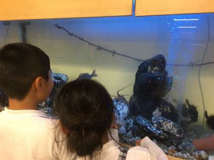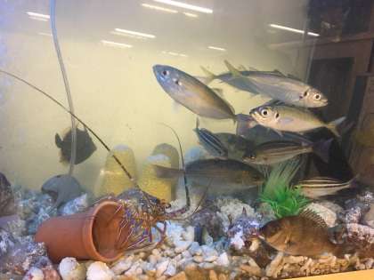 水槽では新たな仲間に伊勢エビくんたちが大歓迎しています。