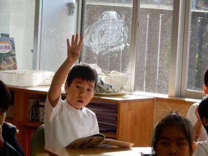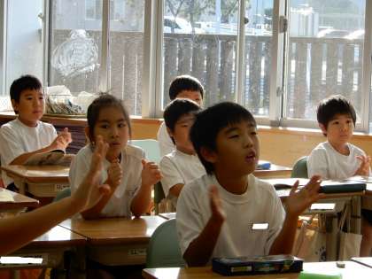 ことばのいずみ 音の数を手拍子で体感しながら学習しています。