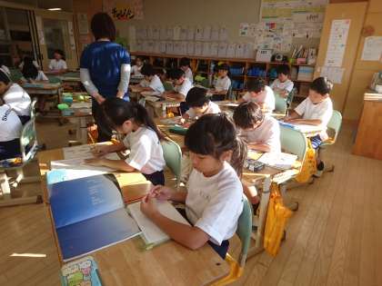 2年生は国語で「漢字の部屋」という教材を学習しています。今日は同じ読み方の漢字(同音異義語)について、それぞれが意見を出し合いました。